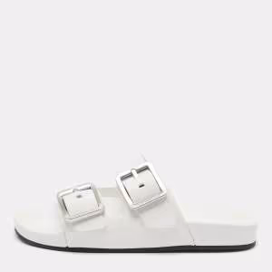 Balenciaga White Leather Mallorca Flat Slides Size 38
