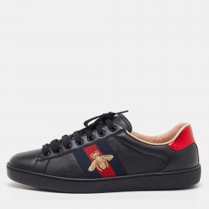 Gucci Black Leather Embroidered Bee Ace Sneakers Size 43.5