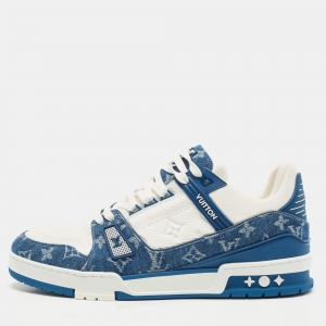 Louis Vuitton X Nike Blue/White Leather Nike Air Force 1 Low Top Sneakers Size 42
