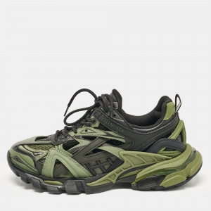 Valentino Rockrunner Size 43 Green Canvas, Leather and Suede Lace Up Sneakers