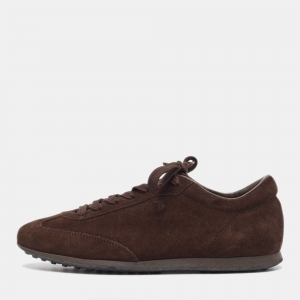 Burberry Brown Leather And Nova Check Canvas Low Top Sneakers Size 43