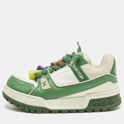 Louis Vuitton White/Green Leather and Denim LV Trainer Sneakers Size 44