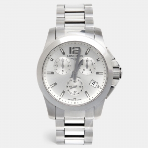 Longines Silver Stainless Steel Conquest L3.660.4.76.6 Men's Wristwatch 41 mm