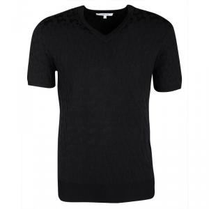 Carven Black Patterned Jacquard Knit Short Sleeve V-Neck Top L