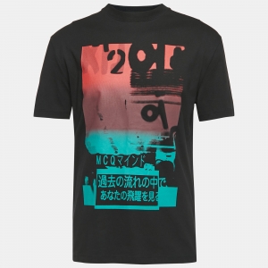 McQ by Alexander McQueen Black Printed Cotton Jersey T-Shirt M