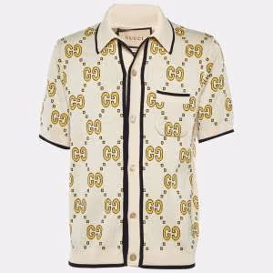 Gucci Cream Geometric G Print Cotton Muslin Bowling Shirt M