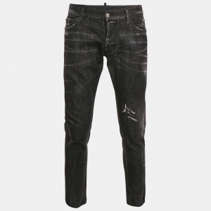 Dsquared2 Dark Grey Distressed Denim Buttoned Jeans XXL Waist 38"