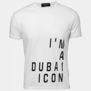 Dsquared2 White Champagne Print Cotton Crew Neck Half Sleeve T-Shirt M