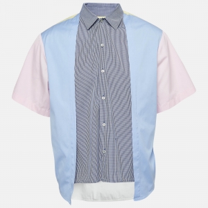 Dsquared2 Blue Washed Denim Raphia Trimmed Button Front Full Sleeve Shirt L