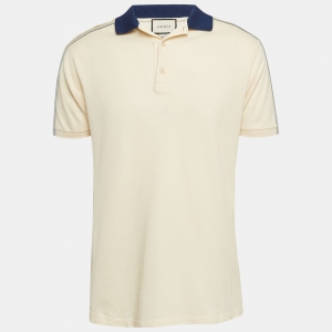 Gucci Off White GG Embroidered Cotton Polo T-Shirt S