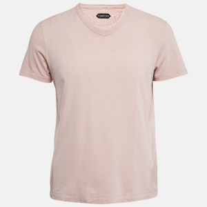 مملوكة مسبقًا Tom Ford Pink Cotton V-Neck T-Shirt S