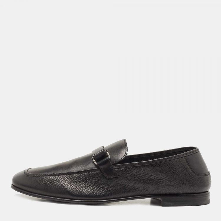 Pre Owned Salvatore Ferragamo Black Leather Gancini Loafers Size 44.5
