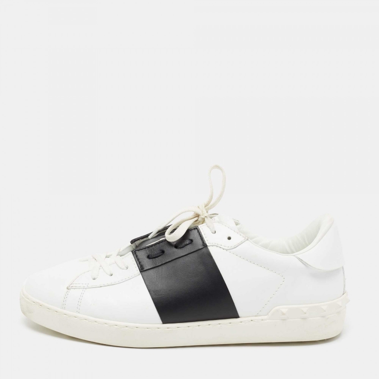 Valentino White/Black Leather Rockstuds Lace Up Sneakers Size 43