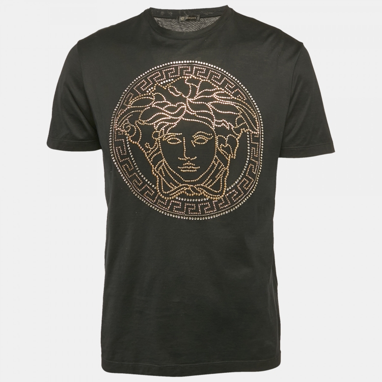 Versace Black Medusa Stud Embellished Cotton Crew Neck T-Shirt L