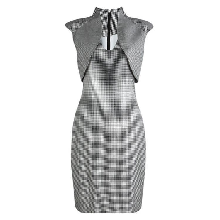 Pre Owned Alexander McQueen Monochrome Houndstooth Power Shoulder Dress M