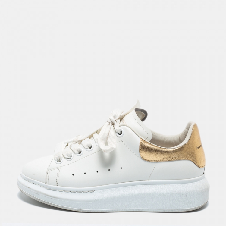 Alexander McQueen White/Gold Leather Oversized Sneakers Size 37