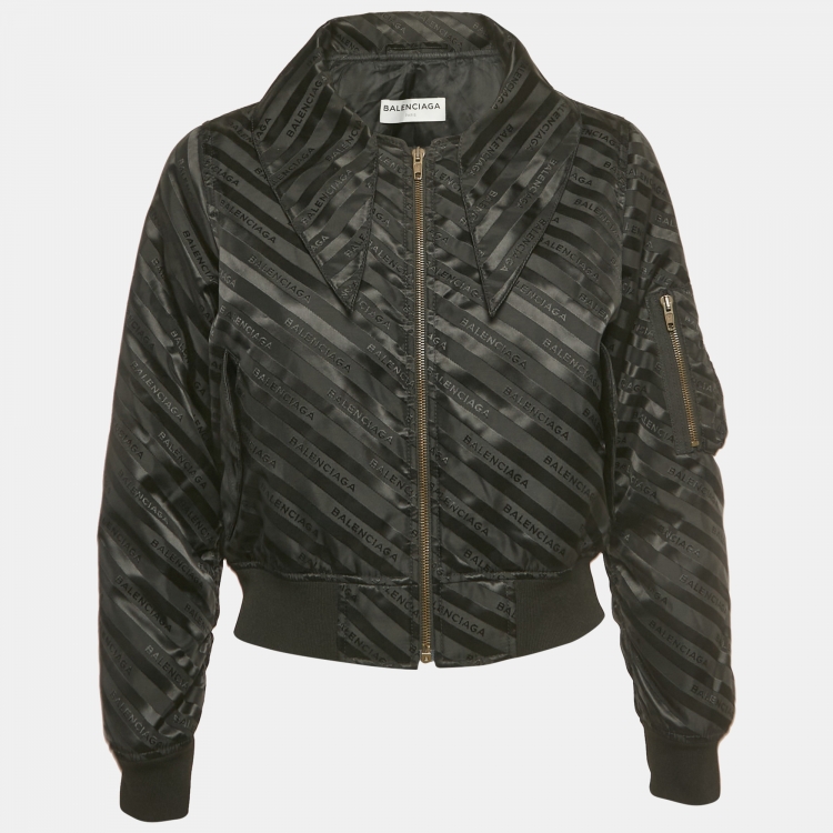 Balenciaga Black Logo All-Over Nylon Bomber Jacket M