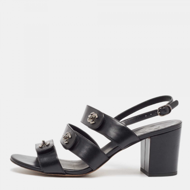 Pre Owned Chanel Black Leather Ankle Strap Sandals Size 40.5