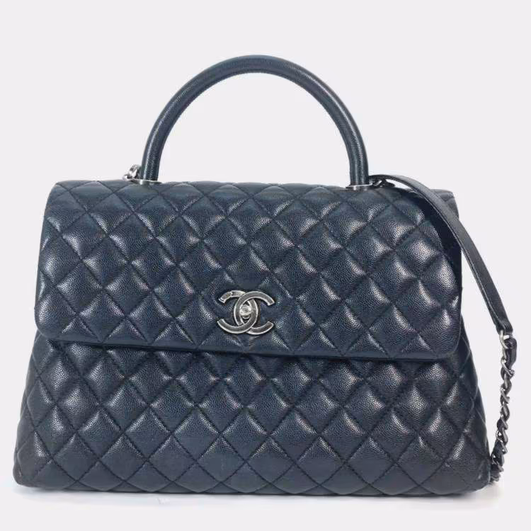 Chanel Black Leather Medium Coco Handle Top Handle Bag