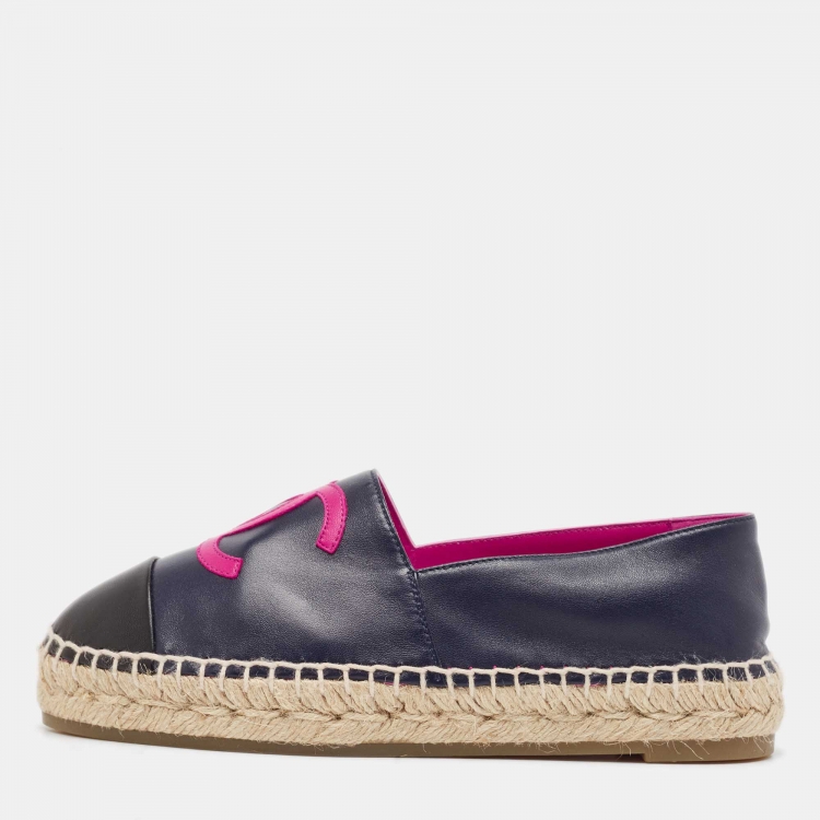 Chanel Black/Navy Blue Leather CC Cap Toe Espadrille Flats Size 36