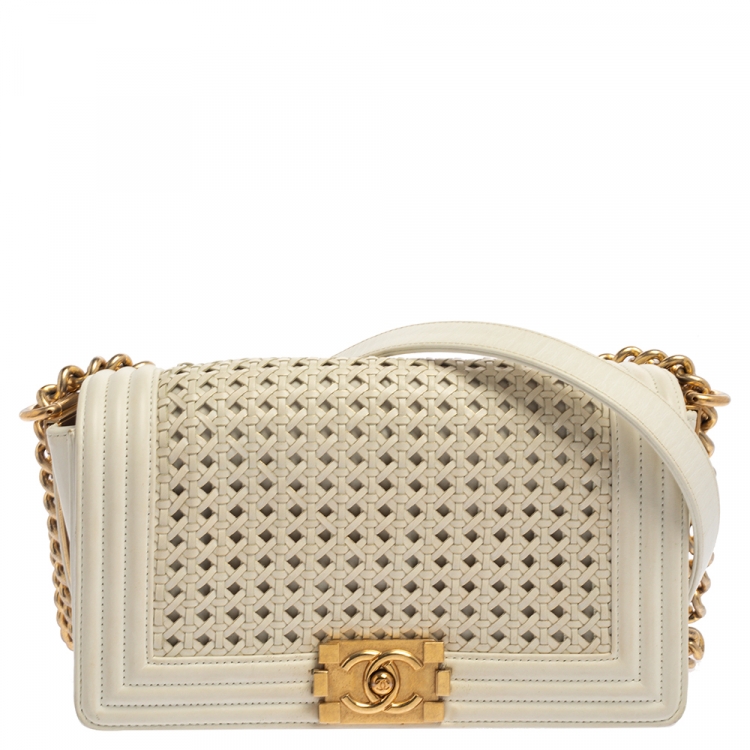 Chanel White Leather Medium Boy Braided Flap Bag