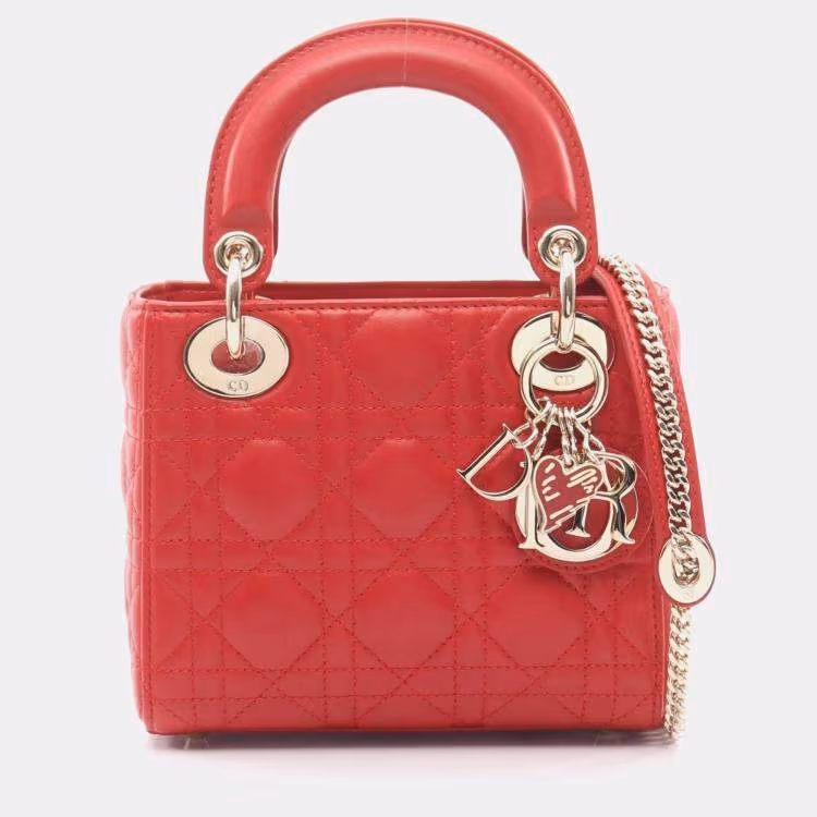 Christian Dior Dior Lady Mini Cannage Handbag Leather Red
