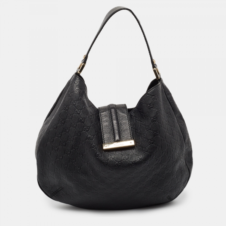 Gucci Black Guccissima Leather Large New Ladies Web Hobo
