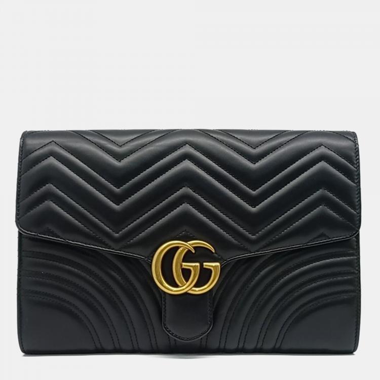 Gucci Black Leather Marmont Matelasse Clutch