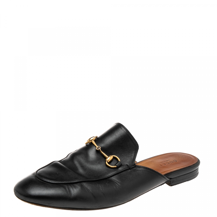 مملوكة مسبقًا Gucci Black Leather Princetown Sandals Size 40.5