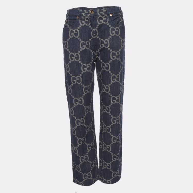 Pre Owned Gucci Blue GG Monogram Denim Straight Leg Jeans M/Waist 28"
