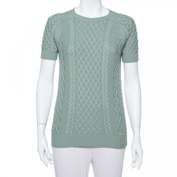 Gucci Pastel Green Cable Knit Short Sleeve Sweater S