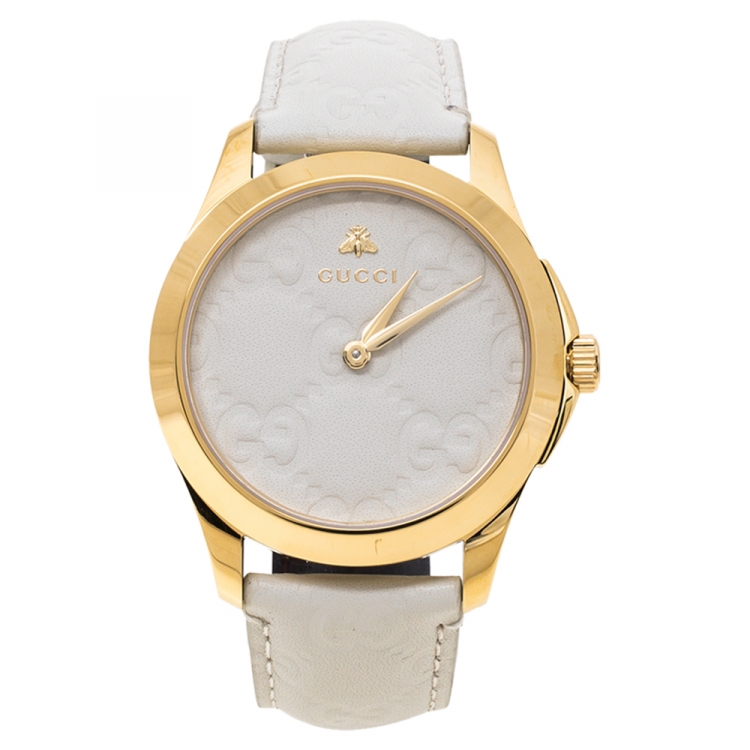 Leather, Yellow Gold PVD Coated Stainless Steel