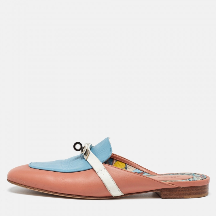 Pre Owned Hermes Pink/Blue Leather Oz Flat Mules Size 38