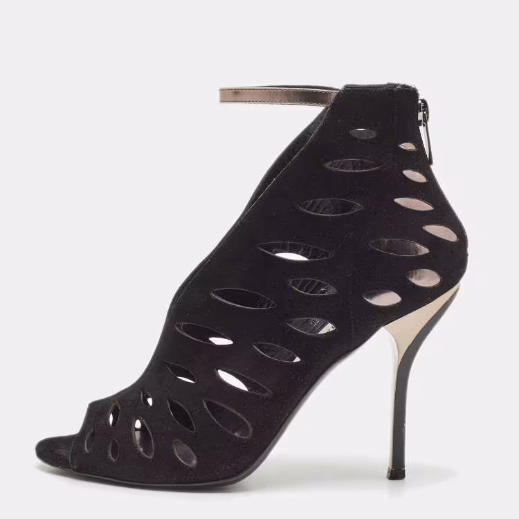 Jimmy Choo Black Leather and Suede Drift Cutout Booties Size 37