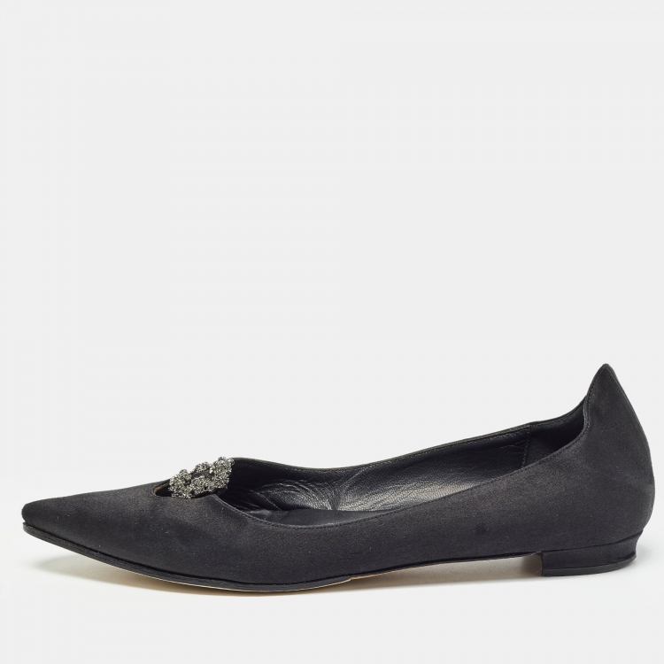 مملوكة مسبقًا Manolo Blahnik Black Satin Crystal Embellished Ballet Flats Size 37