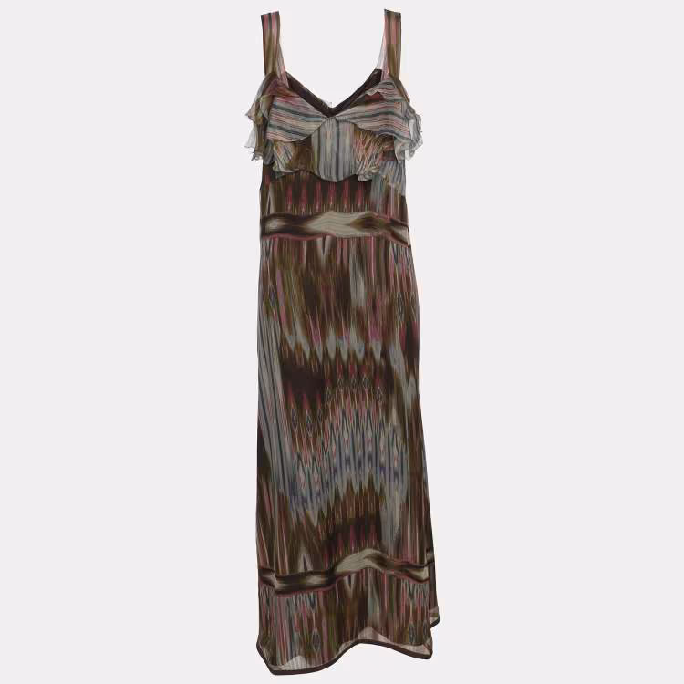 Pre Owned Marina Rinaldi Multicolor Aztec Print Silk Dress L
