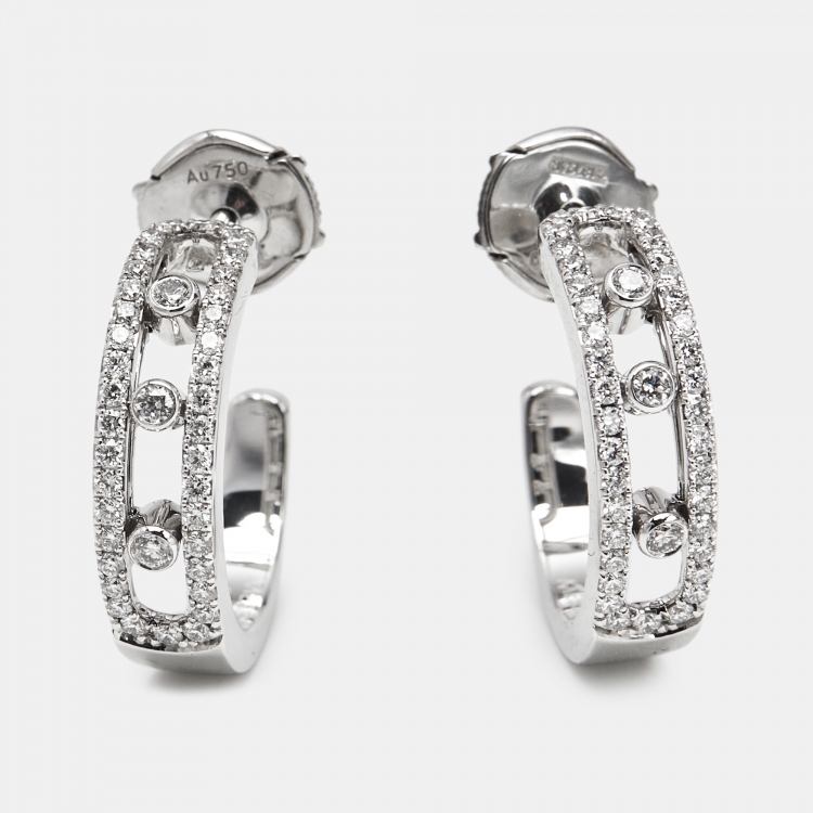Pre Owned Messika Move Pavé Diamonds 18k White Gold Hoop Earrings