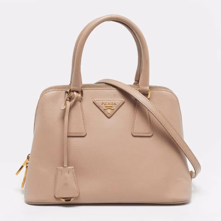 Prada Promenade Small Beige Saffiano Lux Leather Satchel