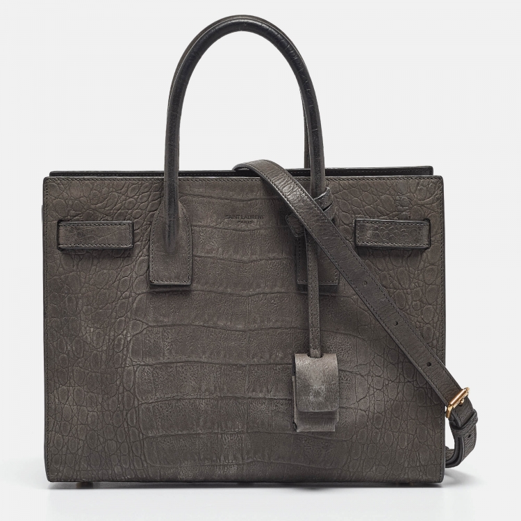 Pre Owned Saint Laurent Grey Croc Embossed Leather Baby Classic Sac De Jour Tote