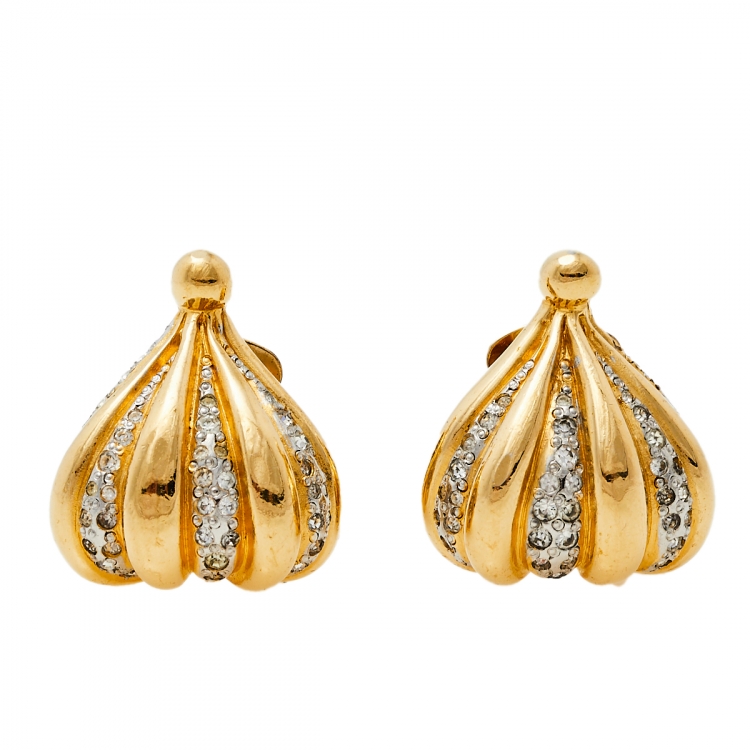 Pre Owned Valentino Crystal Gold Tone Clip On Earrings
