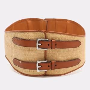 Ralph Lauren Medium Waist Belt Brown Leather and Straw