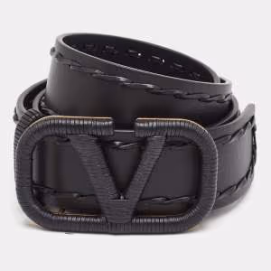 Valentino Black Leather VLogo Reversible Buckle Belt 75CM