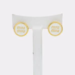 Miu Miu Logo Faux Pearl Gold Tone Earrings