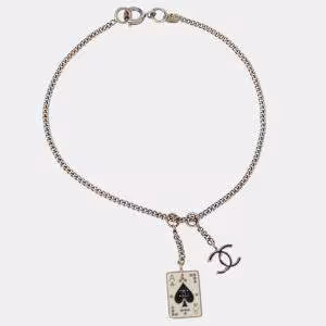 Chanel CC Crystal Faux Pearl Silver Tone Pendant Necklace