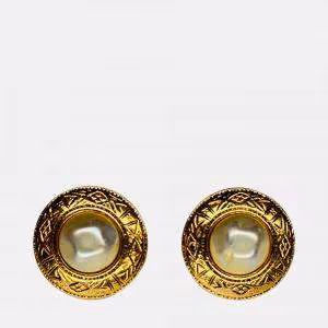 Chanel Vintage Cut Out Design with Pearl Clip On Earrings
