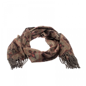 Loro Piana Green Paisley Print Cashmere Fringed Muffler