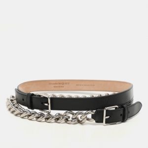 Givenchy Chain Detail Slim 75 CM Belt Black Leather