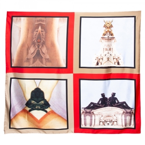 مملوكة مسبقًا Burberry Red Montage Print Silk Square Scarf