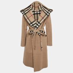 Burberry Brown Cotton Blend Leather Detail Short Trench Coat XS