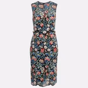 Valentino Black Floral Embroidered Mesh Sheath Midi Dress S